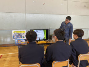 「仕事」ってどういうことなんだろう、「建設業」はどんな仕事なんだろうという興味をお持ちの11名の生徒に重機シミュレーター操作体験、仕事・建設業のお話をさせていただきました。